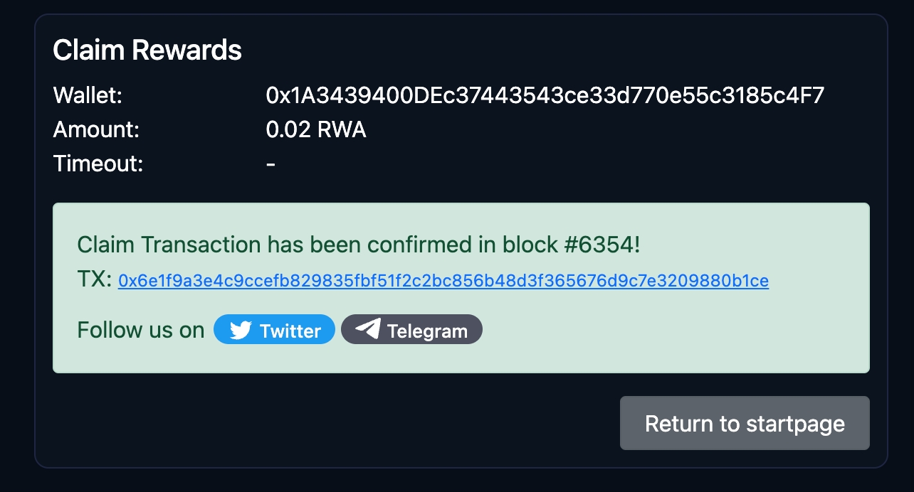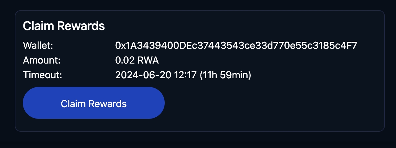 Once you're done mining, the faucet directs you to claim your Test RWA.