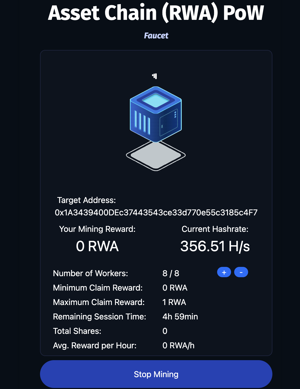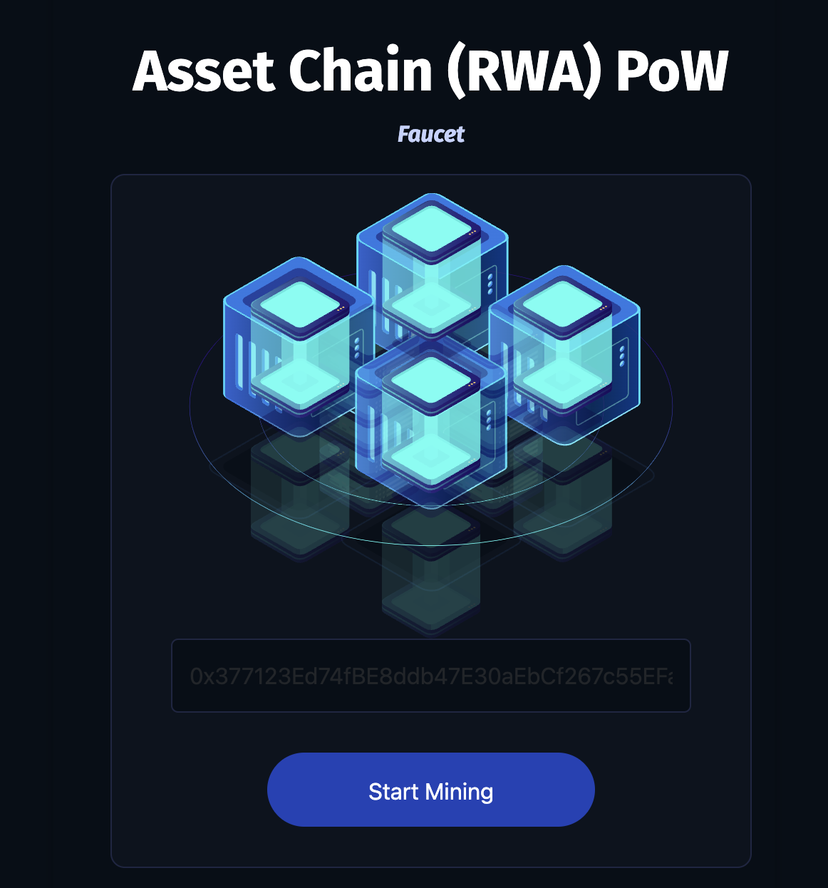 This is an $RWA Faucet running on the Asset Chain Testnet. This faucet requires some mining work to be done in exchange for free testnet funds.