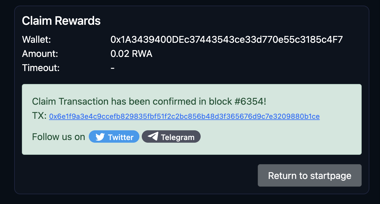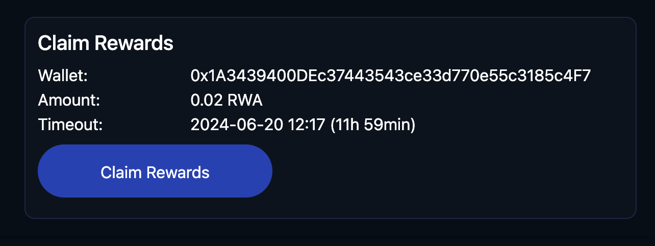 3. Once you're done mining, the faucet directs you to claim your Test RWA.